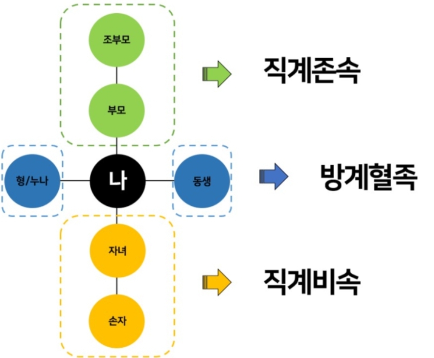 직계존속 : 할아버지, 할머니, 어머니, 아버지