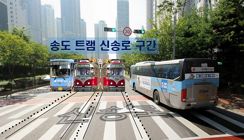 송도는 계획도시로서 대로 중앙에 녹지공간이 있다. 녹지공간을 트램 노선으로 바꾸면 기존 차로의 감소를 최대한 줄일 수 있을 것이다. 녹지 축소나 도로 축소에 따른 피해나 반대는 설득해야할 것으로 보인다.