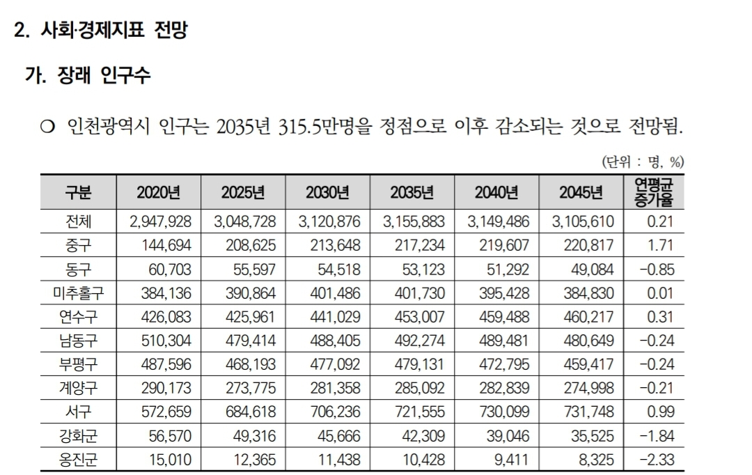 인천은 다른지자체이 비해 지속적으로 인구가 증가하는데 송도가 속한 연수구는 더욱 증가한다. 현재 송도 인구 20만명인데 장기적으로 35만명 이상의 거주인구에 직장 및 관광 등으로 인해 추가되는 유동인구도 많을 것으로 예상된다.