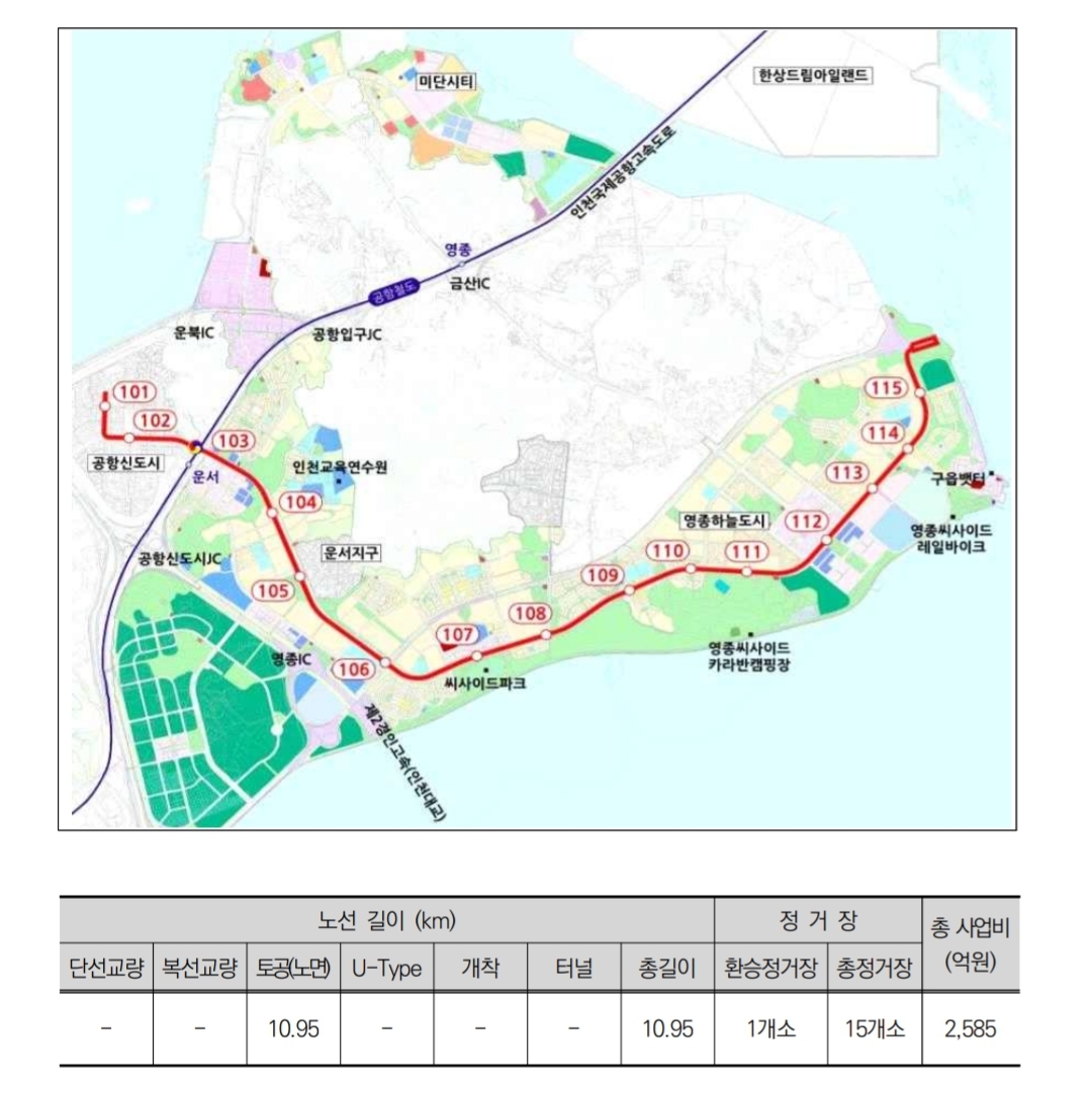영종트램 : B/C값 1.04 / 10.95km / 2,835억