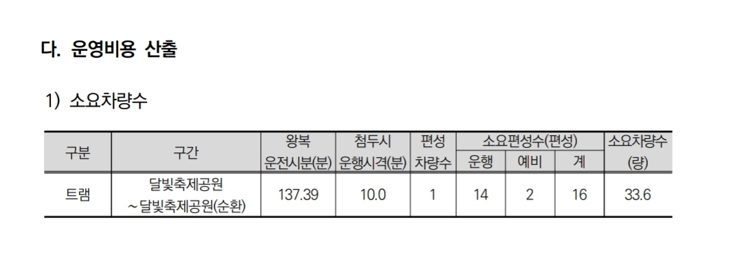 대전시 트램 : B/C값 1.01 / 37.4km / 7,000억