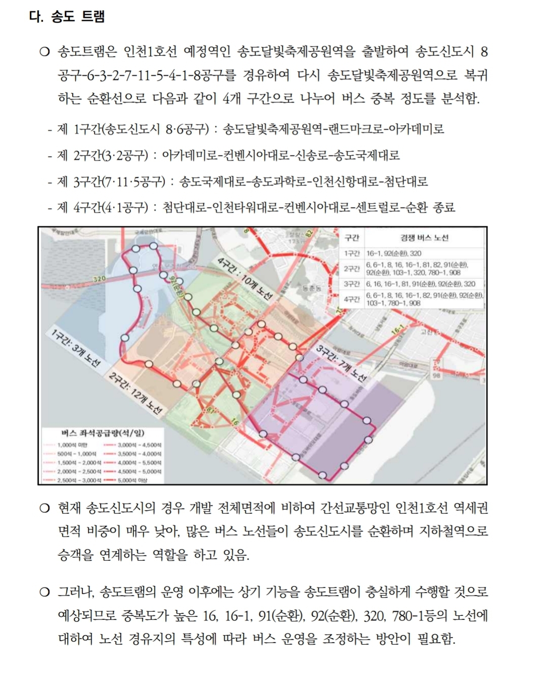 송도의 버스교통 총괄 및 권한은 인천시에 있음(버스총량제와 비슷한 효과를 냄) 버스는 송도 소유가 아니지만 트램은 송도의 자산이 된다.