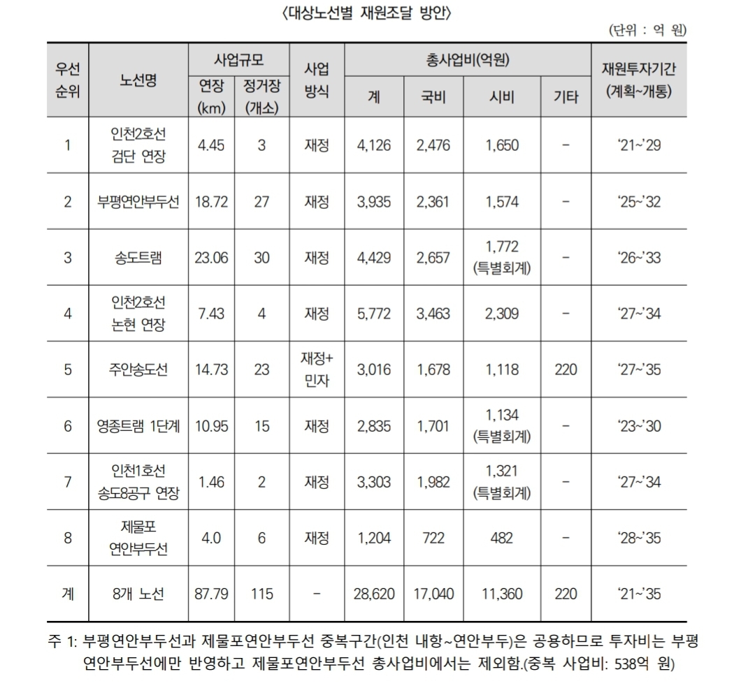 긍정적인건 우선순위는 6위지만 착수시점은 트램 중에서 가장 빠르다. 2023년. 경제청 예산 특별회계로 영종트램 투입되는 것 보면 생각보다 잘될 수도 있겠다는 생각이다.