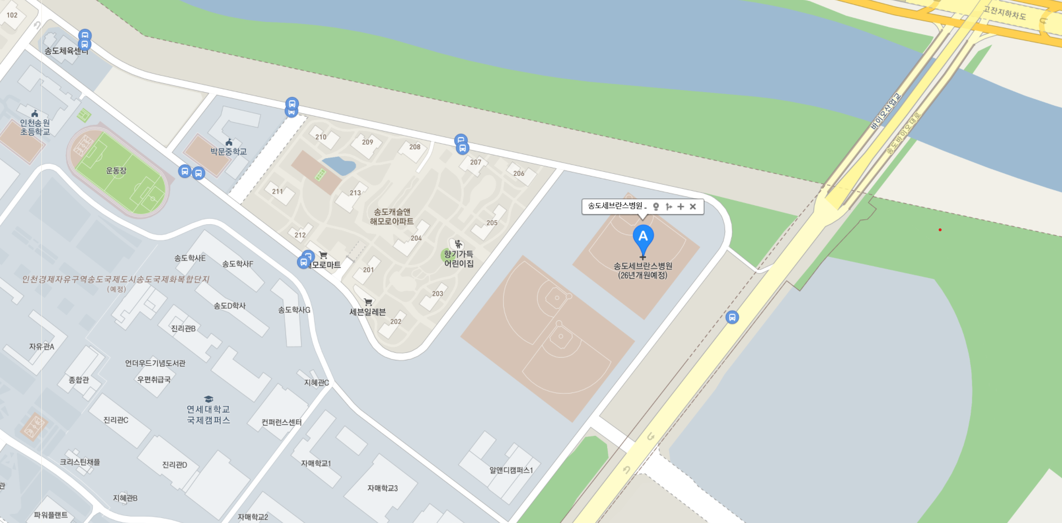 병원에 근무하는 지원인력과 면회객 등을 포함하면 송도세브란스 병원 만으로 유발되는 유동인구는 단순 계산으로 5천명은 될테고 향후 YSP 연구인력(1,000명 목표), 연세대 캠퍼스, 인근에 있는 11공구와 7공구 아파트 주민들을 포함하면 세브란스 병원 인근의 유동인구는 상당한 규모일 것으로 예상된다.