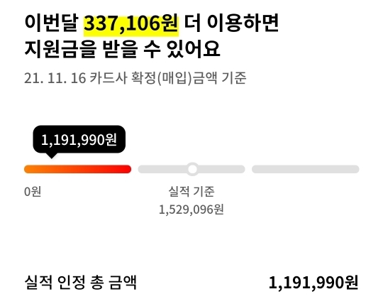 - 신청한 카드사의 이용금액만 계산하는게 아니라 내가 소지한 카드 전체 이용금액으로 계산