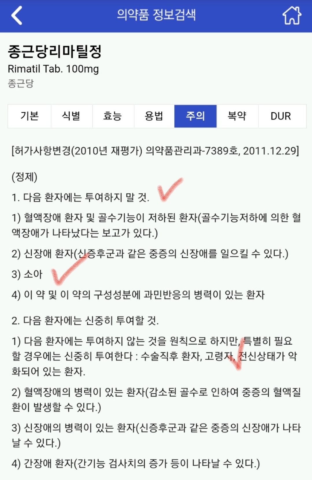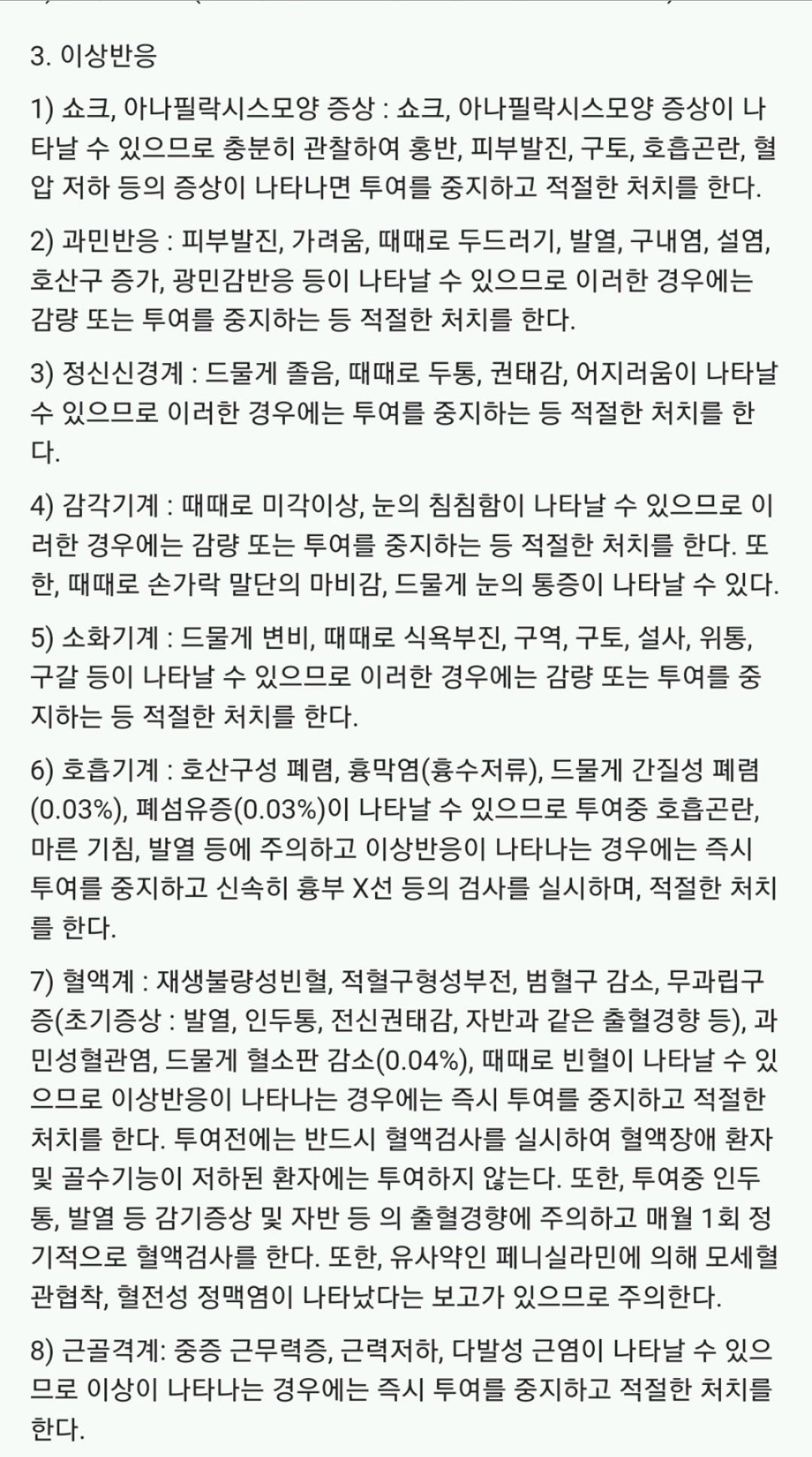 부작용은 아래에 상세하게 나온다. 클릭해서 확대해보면 소아에 대한 사용을 금지하고 있으며