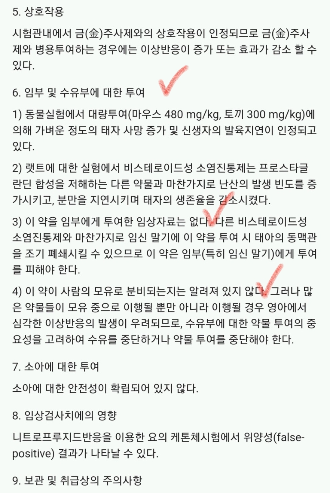 또한, 임산부에 대한 투여데이터는 없으나 동물대상으로한 대규모 용량 투여에서 태자사망증가와 신생자의 발육지연이 일부발견되었다고 한다.