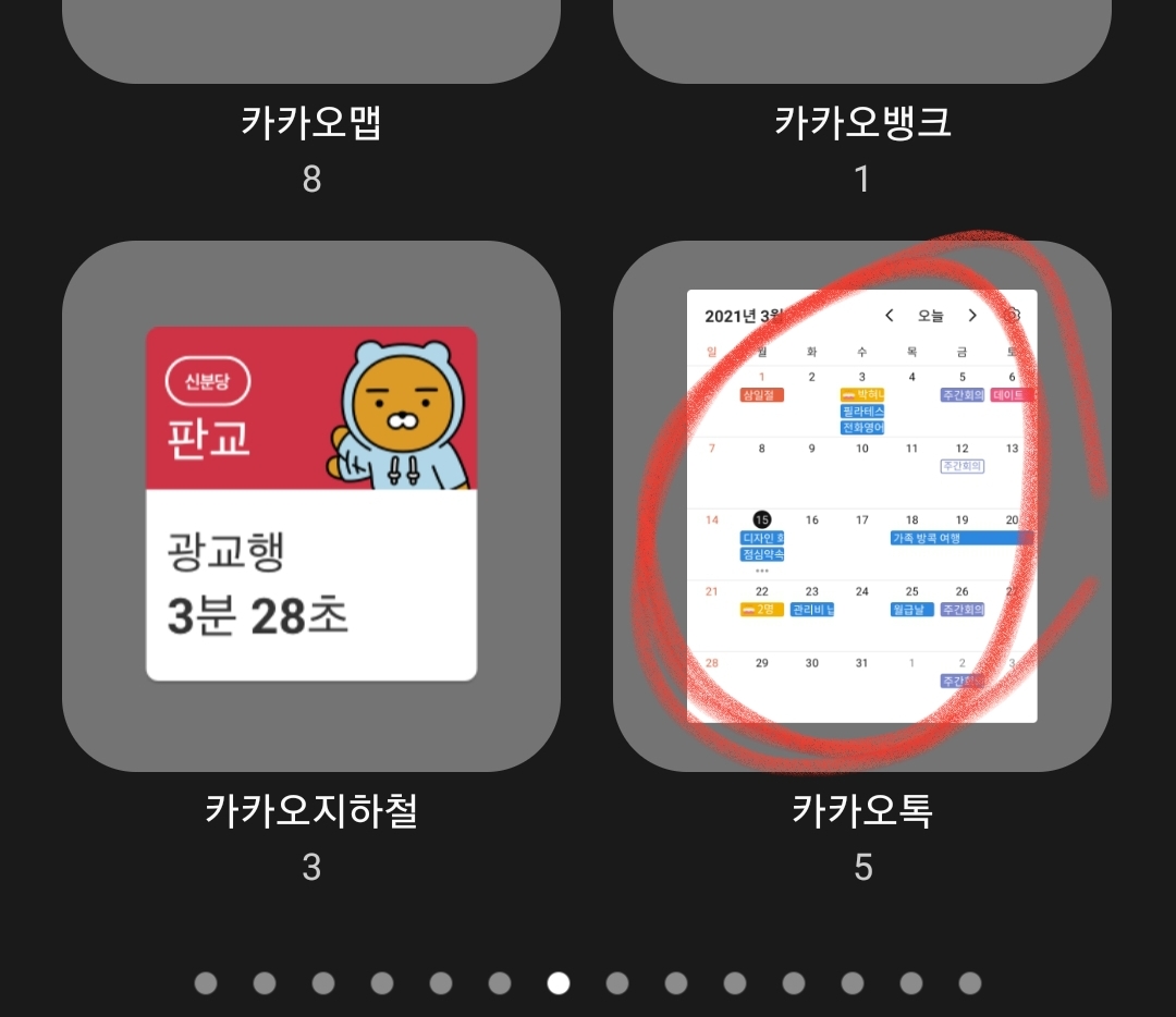 2. 위젯 여러종류 중 '카카오톡' 위젯을 선택
