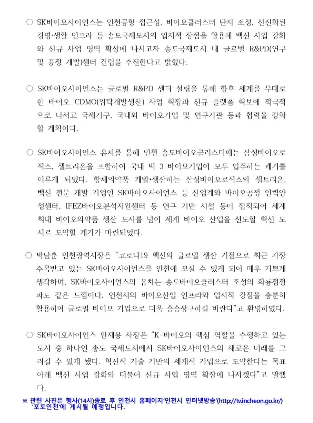 SK바이오사이언스 `본사·연구소 송도 이전` 토지 계약