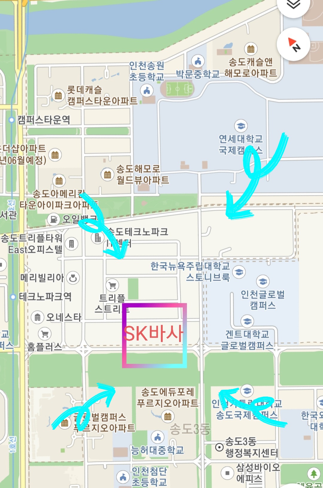 주거지 및 상가, 지하철과 가깝고 세브란스 및 인근 바이오기업과의 시너지 효과 기대되는 위치다. 직장인+학생들 수요가 많기때문에 아파트 뿐만 아니라 상가투자로도 좋지 않을까 기대해본다.