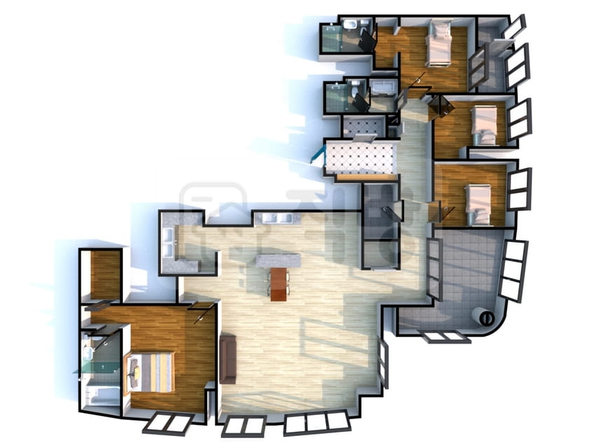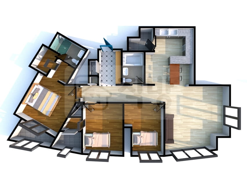회오리 느낌나는 외부장식물이 일부 세대에서 튀어 나오도록 설계되었음