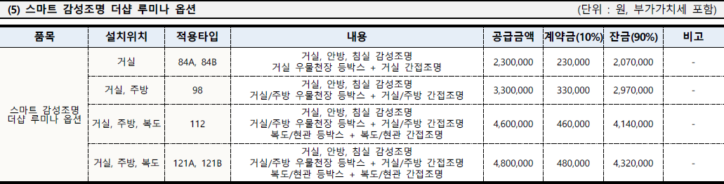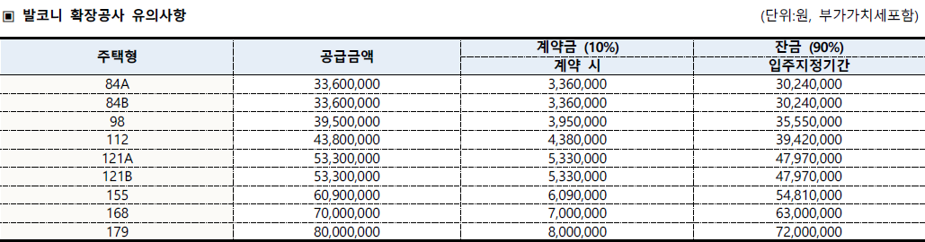 계약금 10% 준비(분양가 + 옵션비용의 10%) 중도금 총 6회차 중 4개회차 까지 중도금 총 6회차 중 2개회차는 자납 해야 함