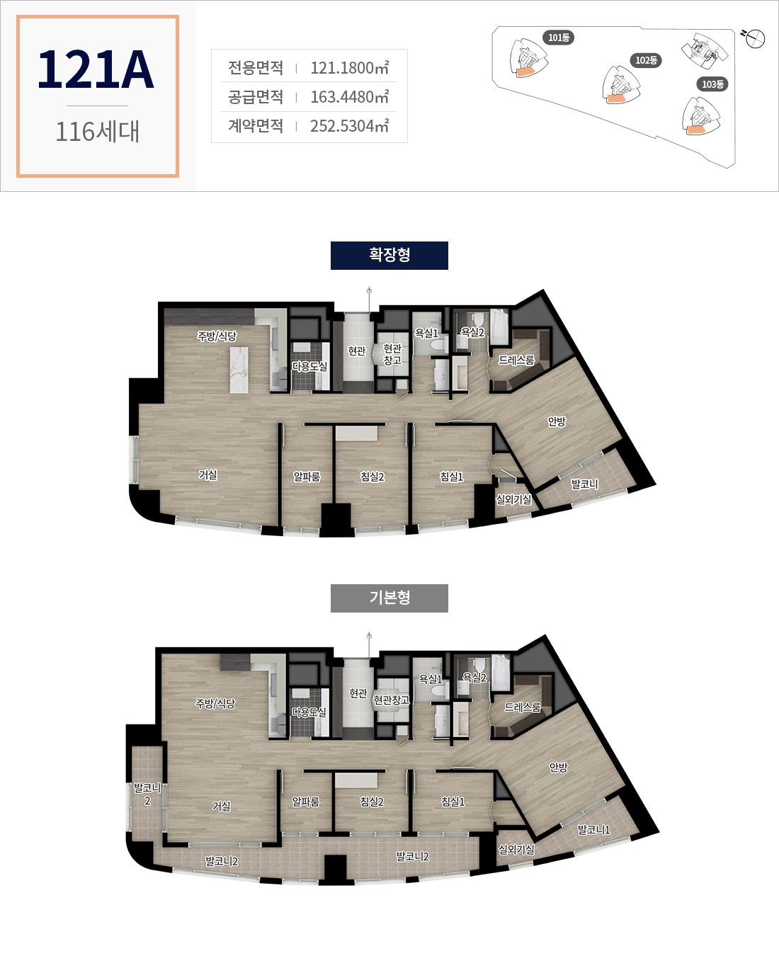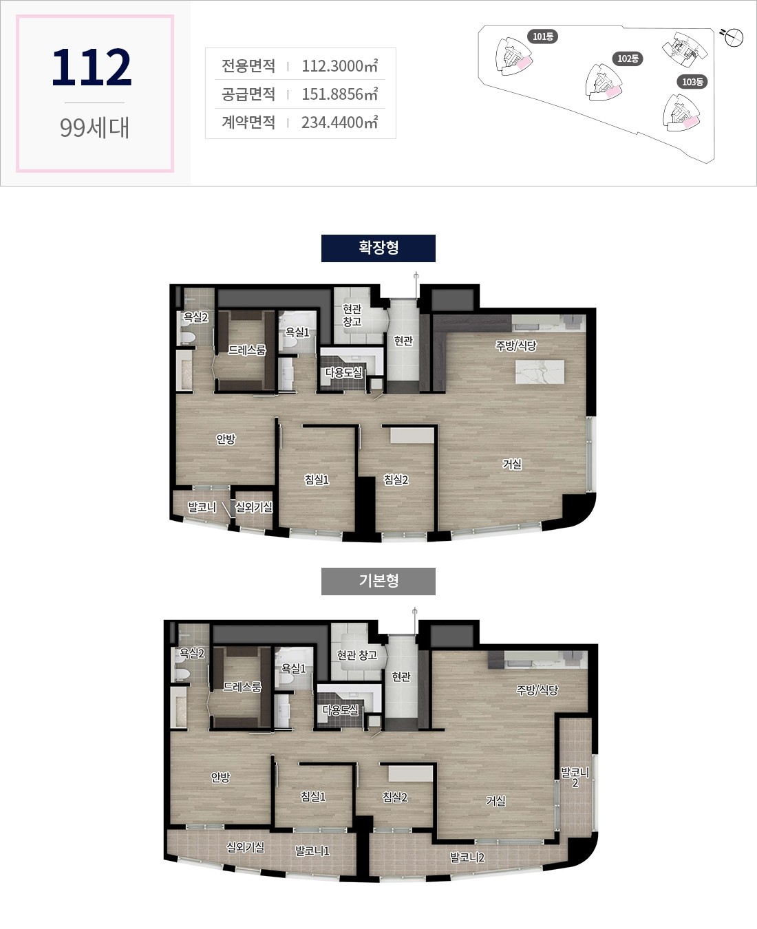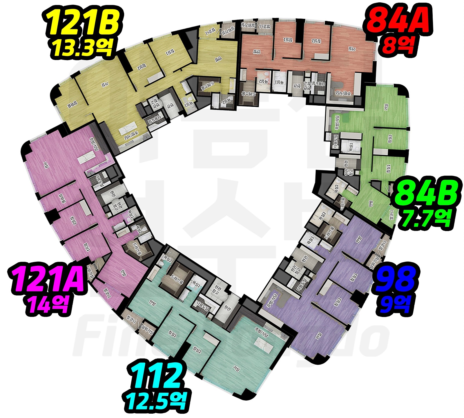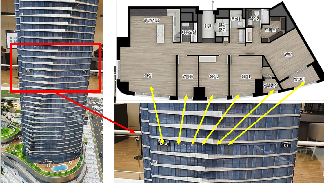 112, 121 부터 조망과 입지 둘다 기대할 수 있다. 워터프론트와 오션뷰도 기대된다.