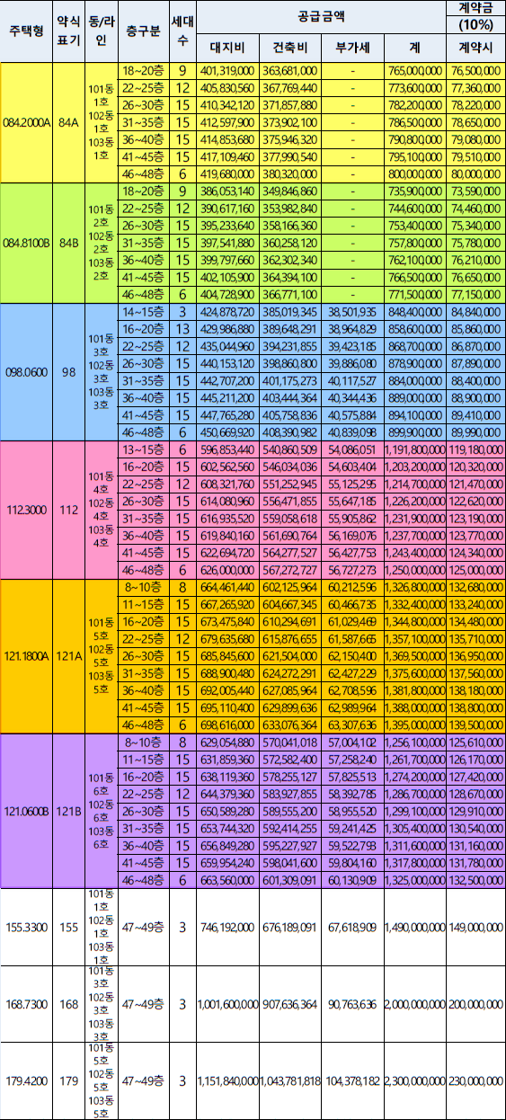 84B는 워터프론트 조망은 사이 조망도 기대하기 어렵겠다. 분양가가 84A보다 84B가 낮은 이유.