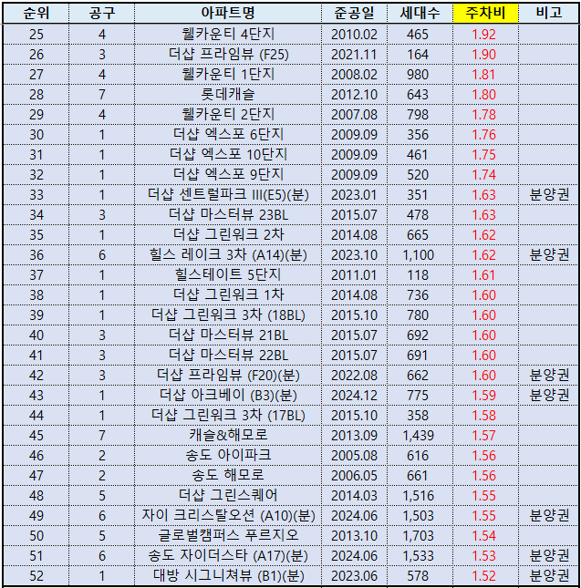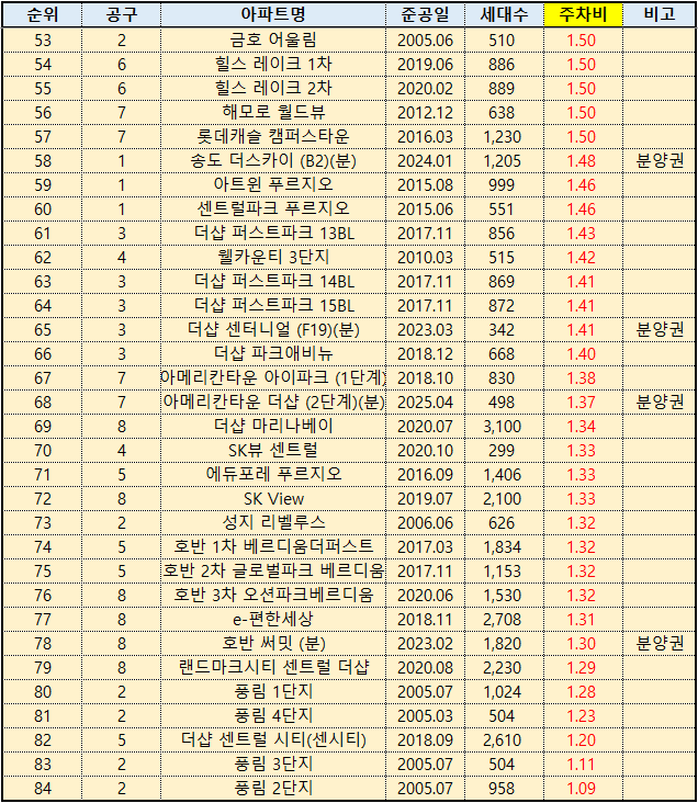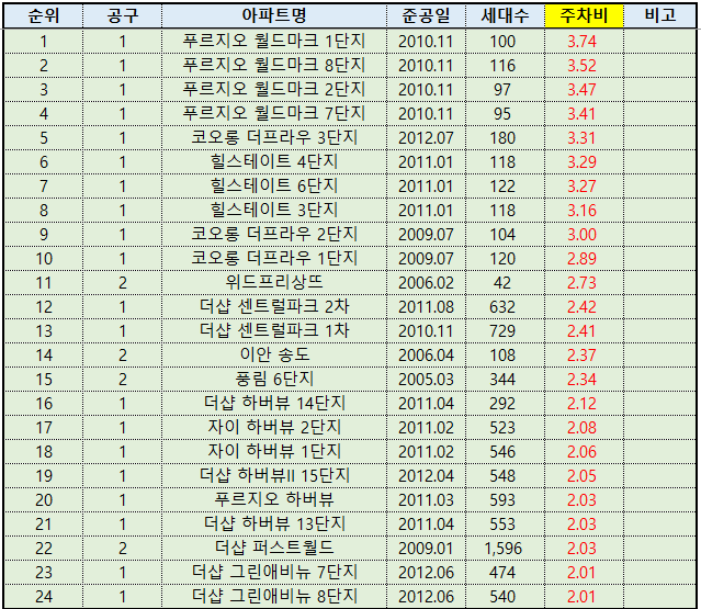 대형평수가 많은 1공구의 주차비가 좋은 편이다.