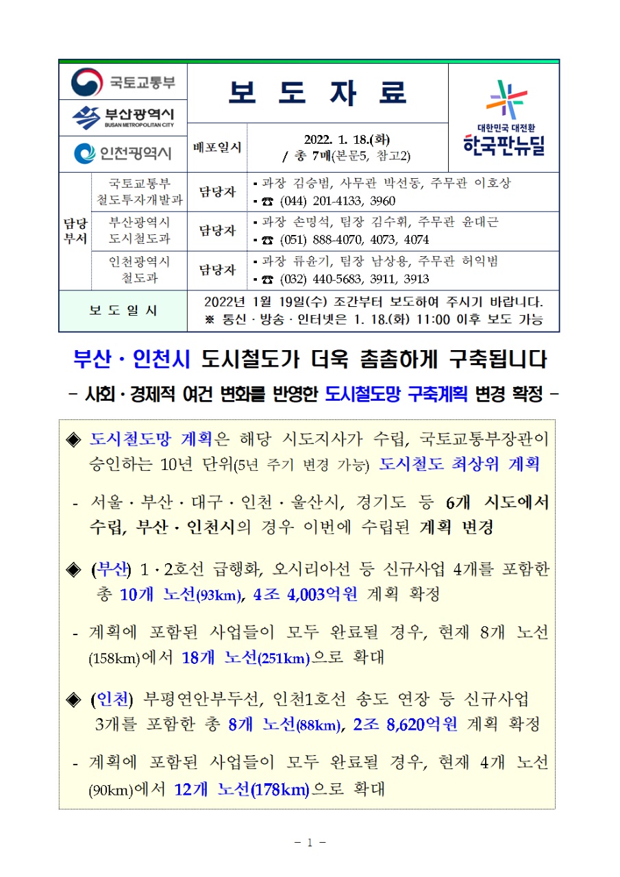 국토부 발표부산에는 4조4천억인천에는 2조8천억이제 기획재정부 예타넘고송도트램 조기착공가자.