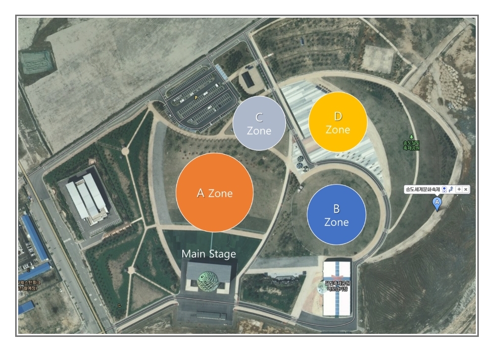 A ~ D존으로 구성되고 A,C,D존에 푸드트럭 등 먹을거리가 배치될 것으로 보인다.(제안서 확인)