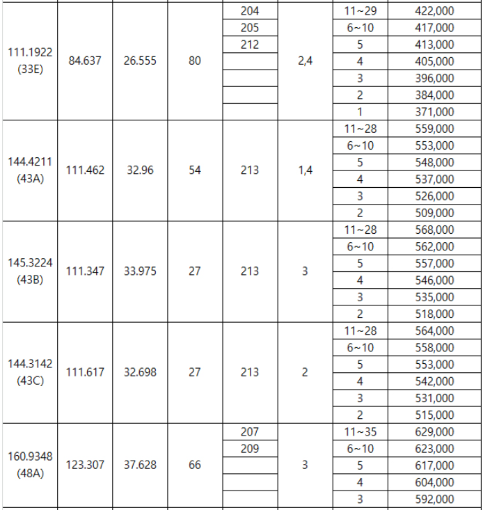 구체적으로는 210/211동 D Type, 211/212동 C Type, 201/202동 A Type, 213동 43A(남서) 중에 원함. 다른타입은 다 봤는데 43A 남서는 매물로 나온게 없어서 못봄.