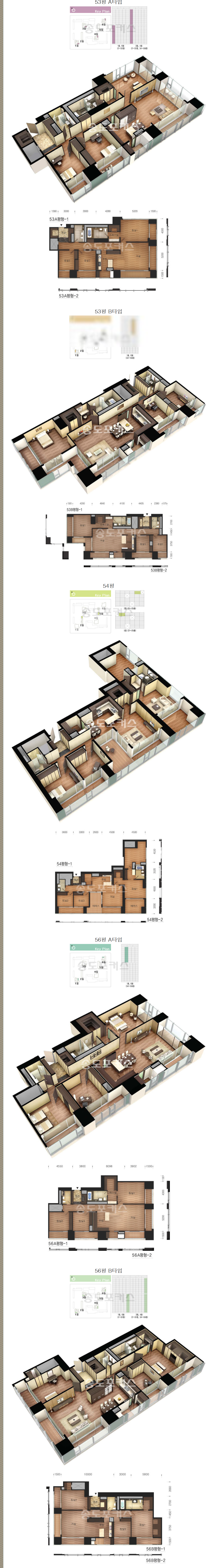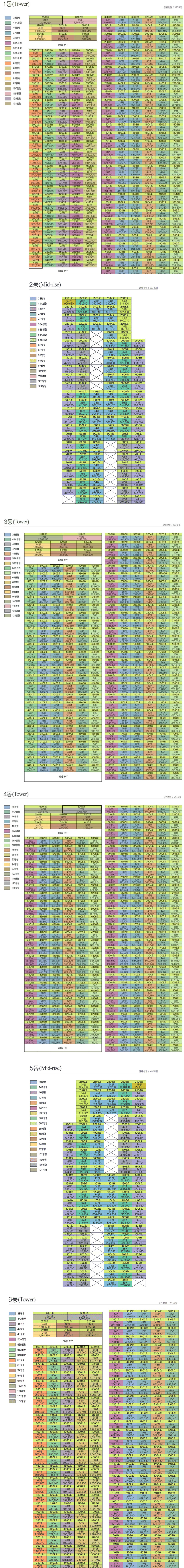 센트럴파크 조망(서향) 1동: 124, 119, 94, 97, 92, 68, 65, 56B, 53A, 53B, 48, 44A평 4동: 120, 97, 92, 48, 47, 4...