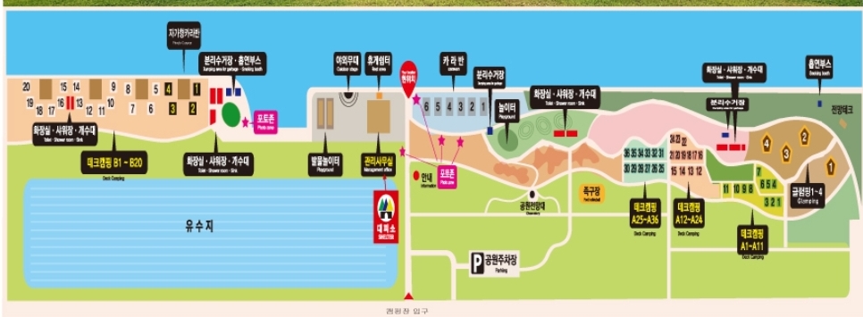 국제캠핑장은 구역이 나눠져있는데 구역별 주차 방법이 다르다.