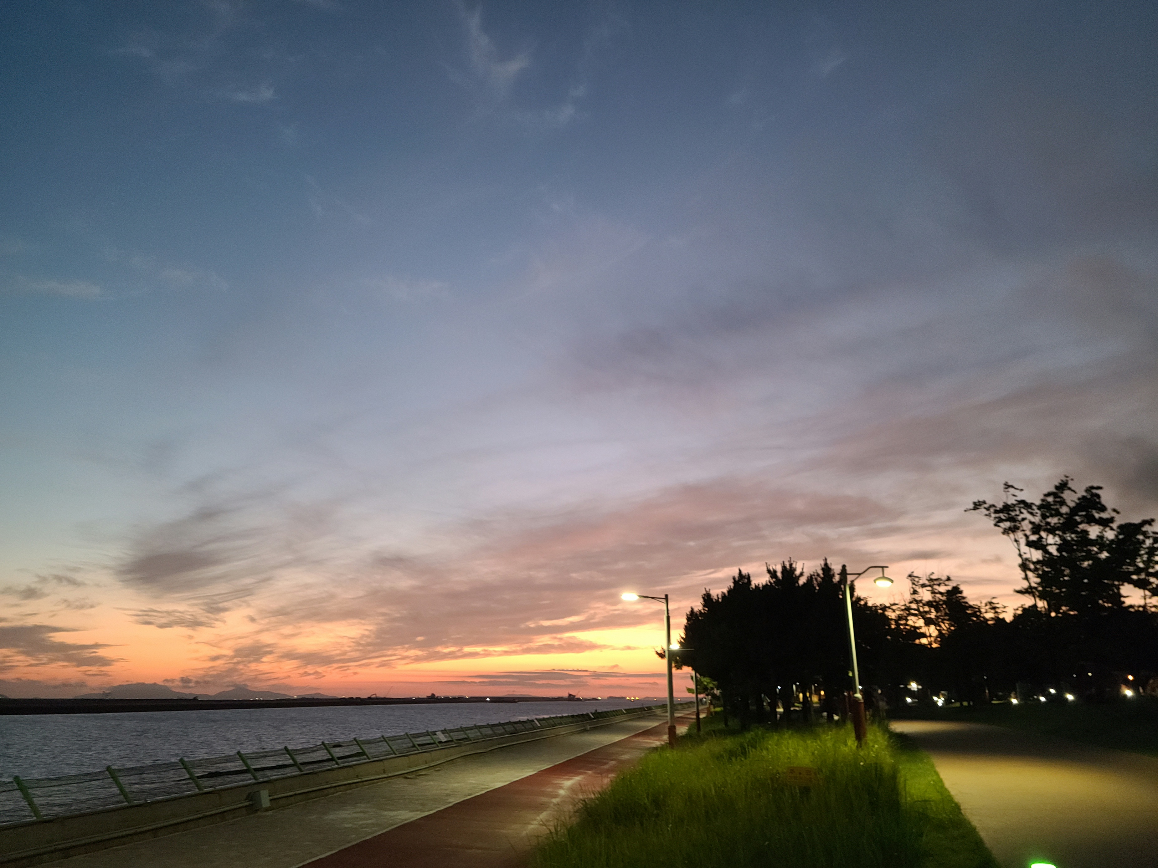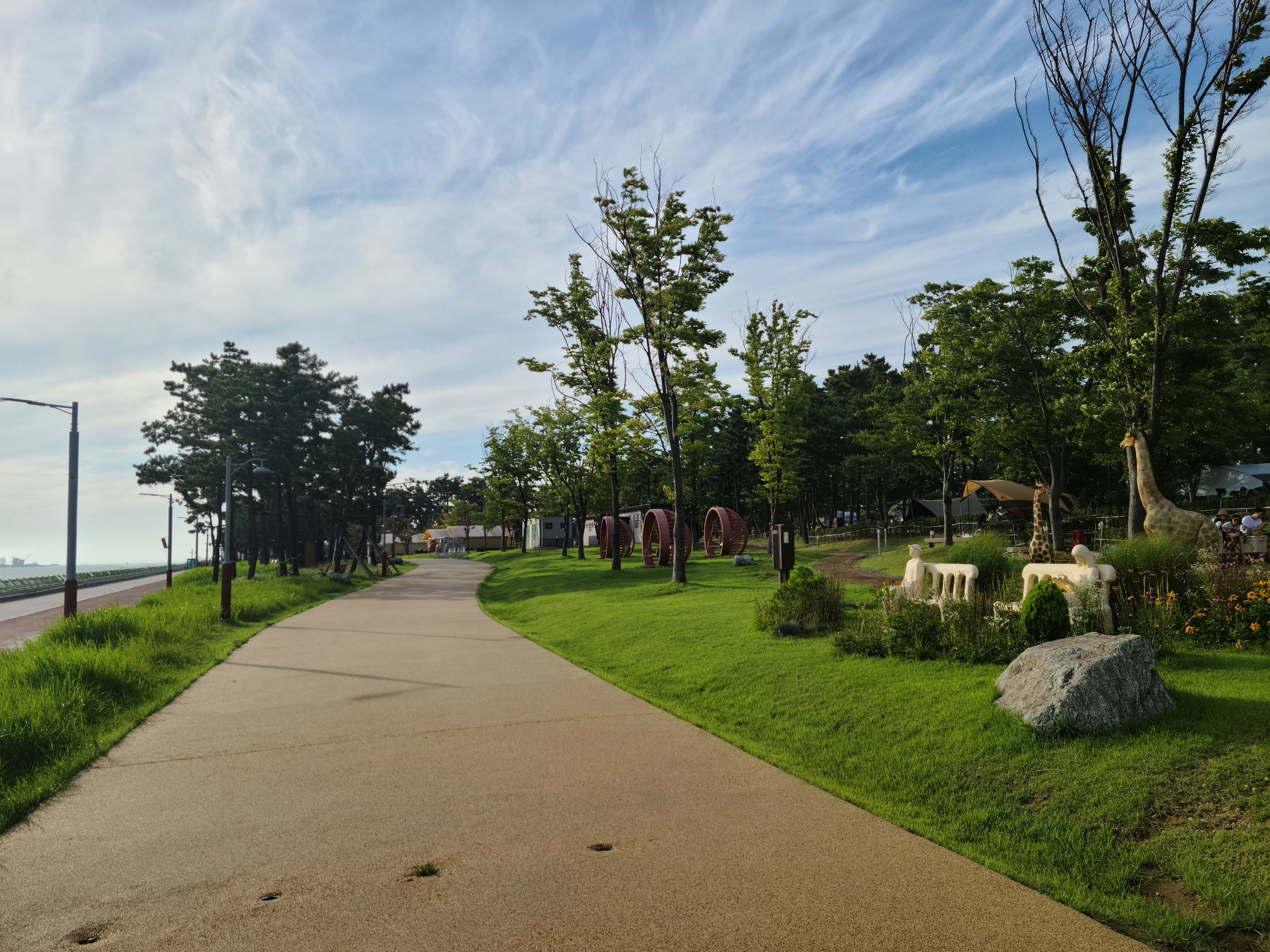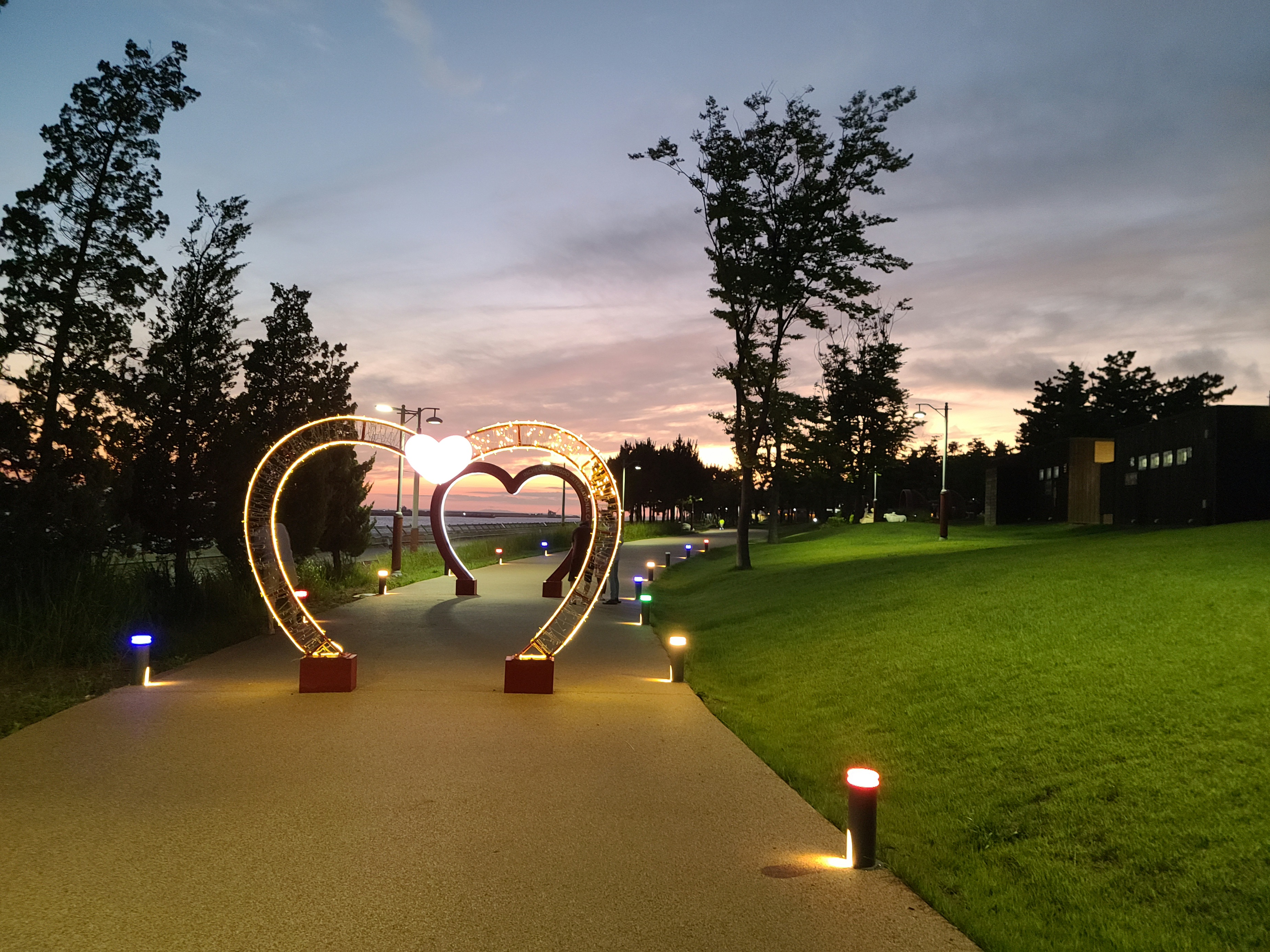 새거 느낌은 났는데 첫인상은 좋았으나 구석구석보면 먼지가 있긴하다. 카라반 옆에 넓은 잔디밭과 테이블, 정돈된 나무한그루가 있어서 운치가 있었고 카라반 앞으로 나무울타리, 그 앞에는 산책길 및 바다가 있다. 카라반은 캠피장 입구 근처고 놀이터 및 공용 화장실, 샤워실, 개수대 및 잔디밭, 산책길이 있는 최상의 입지이기도 하다. 고기 구우면서 식사도 하고 노을질 때쯤 잠깐 산책길 가서 노을지는 바다를 배경으로 사진을 찍기도 했다.