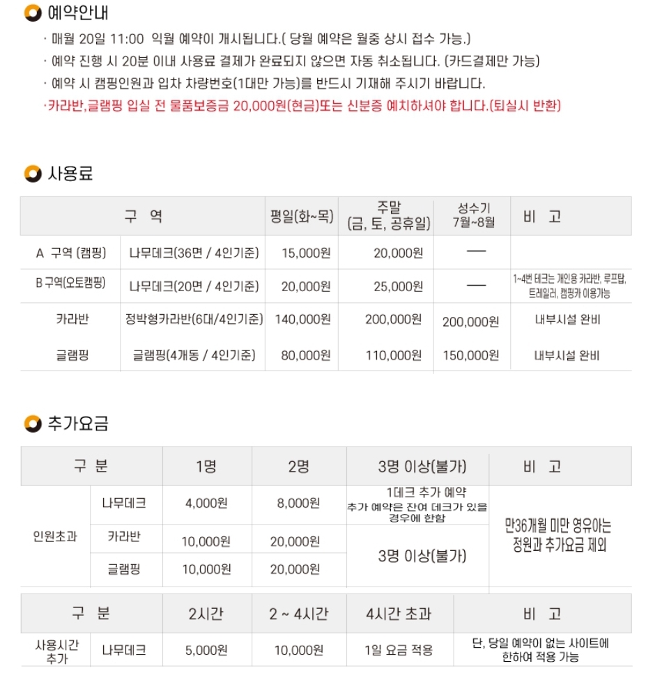 A구역/글램핑장 – A데크 부지에 글램핑장 이 있는데 A데크 처럼 캠핑장 전용 뒷길 도로변에 주차