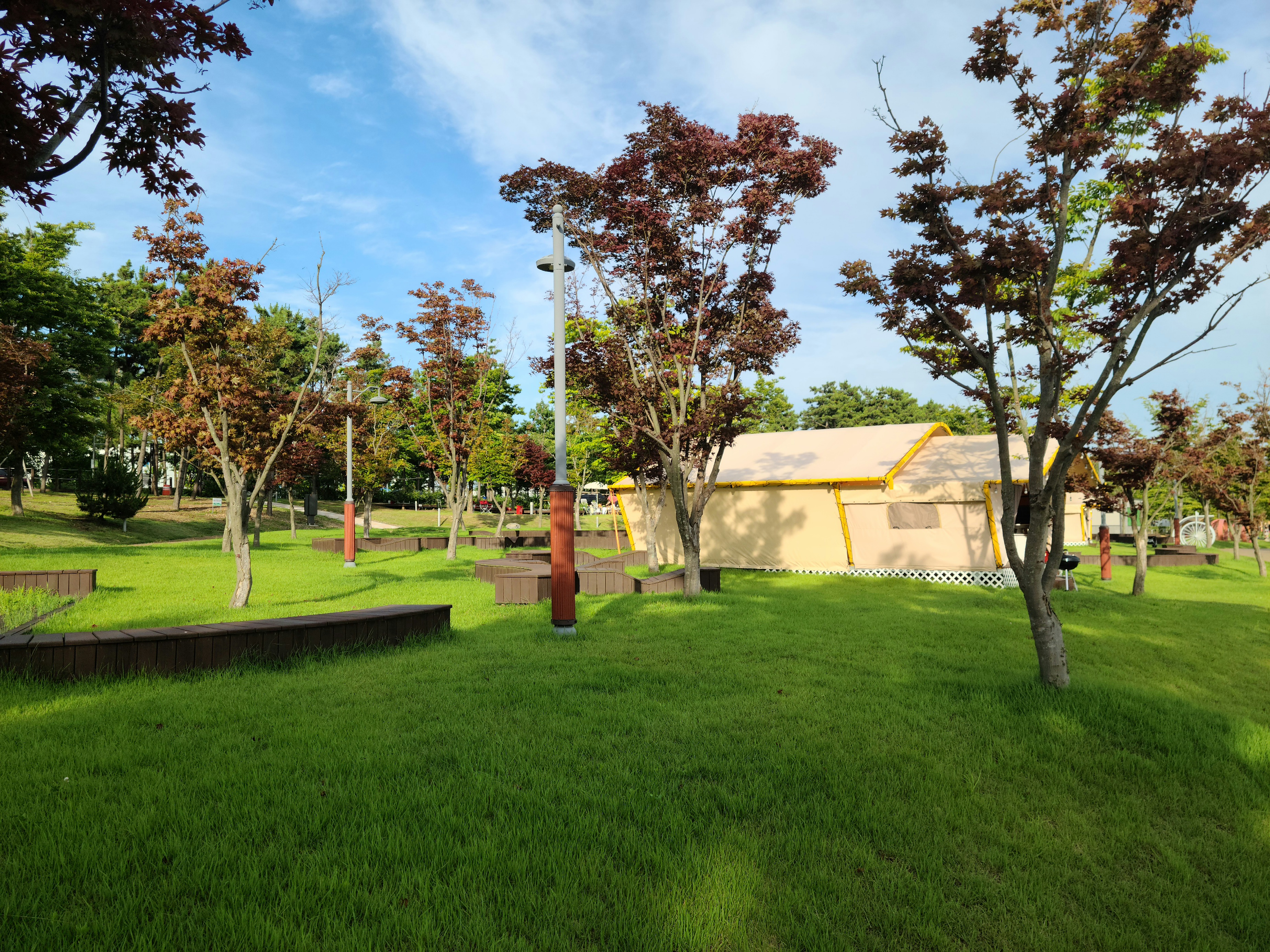 아래는 저번에 다녀온 글램핑장인데 텐트간격이 너무 좁아서 무슨이야기하는지 다들렸다. 그곳에 비하면 송도국제캠핑장은 마당넓은집.