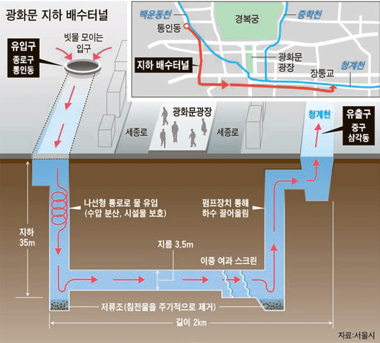 서울에서도 빗물처리 인프라가 만들어진 곳은 이번 국지성 홍우로 인한 침수 피해를 비켜갔다.