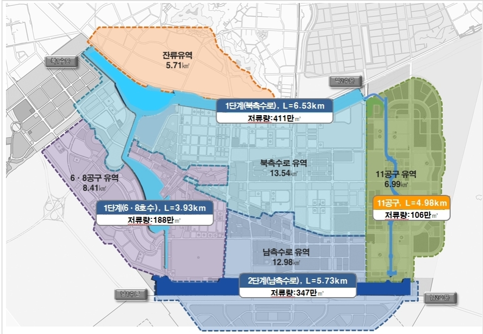 북측수로 : 1,2,4,5,7,8공구의 빗물 저장