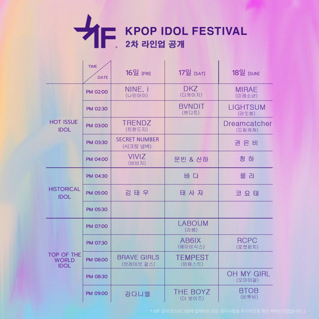 KIF 2차 라인업(발표 후 업데이트)