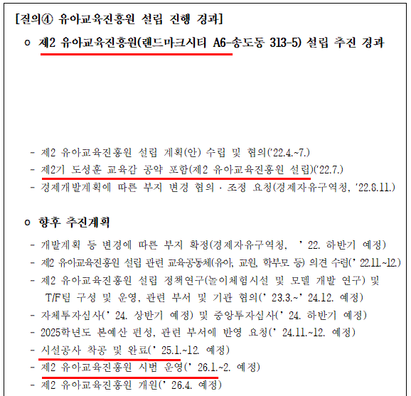 도성훈 교육감께서 선뜻 이를 다른 지역이 아닌 송도지역 공약으로 채택해 주셨고, 이에 유아교육 진흥원을 송도에 유치할 수 있게 되었습니다.