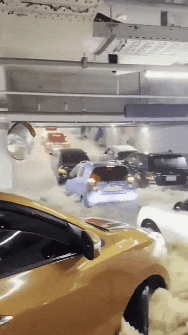 지하주차장은 경사로 이므로지면의 빗물 또는 범람한 강물이 쏟아져 내려오기 때문에 급류가 발생한다.당연히 차는 움직이지 않고 나중에는 사람도 올라갈 수 없다. 물이 찬 후에는 흙탕물이라 시야가 0이므로 수영잘해도 불가.