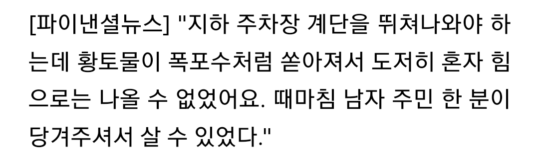 그리고 지하주차장 계단실도 주차장쪽으로 열리다보니 30cm만 차올라도 문을 열 수 없다. 또는 계단실도 급류처럼 변할수도 있다. 문이 휘어질 정도니까