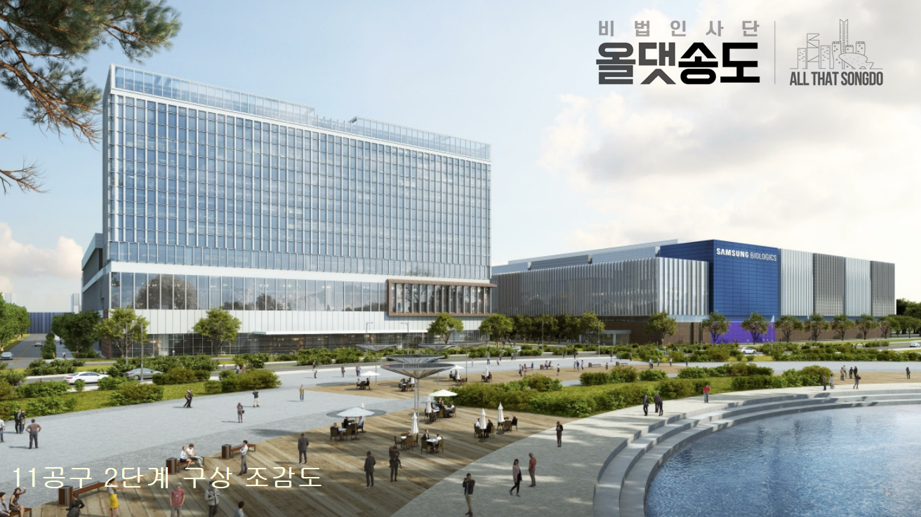 삼성바이오로직스는 5공구에 터를 잡고 본사 및 1~4공장을 지어서 가동하는 중인데 현재 상태로도 세계최대 바이오위탁생산업체이다.