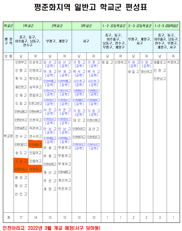 참고로 인천에 있는 고등학교 학교군은 세 개 학교군으로 나눠져 있고요. 그리고 일부 학교가 공동학교군으로 어느 지역에서 올 수 있도록 돼 있었는데 특히 제고 같은 경우는 서구의 먼 끝에서 오다 보면 너무나 많은 시간이 걸리기 때문에 이것만 일부 조정해 놓은 그런 상태라는 것을 말씀을 드리겠습니다.