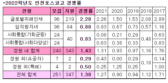 *인천포스코고등학교 250명 중 송도에 거주하는 포스코 임직원 자녀가 대략 100명 입학. 전국단위 지원