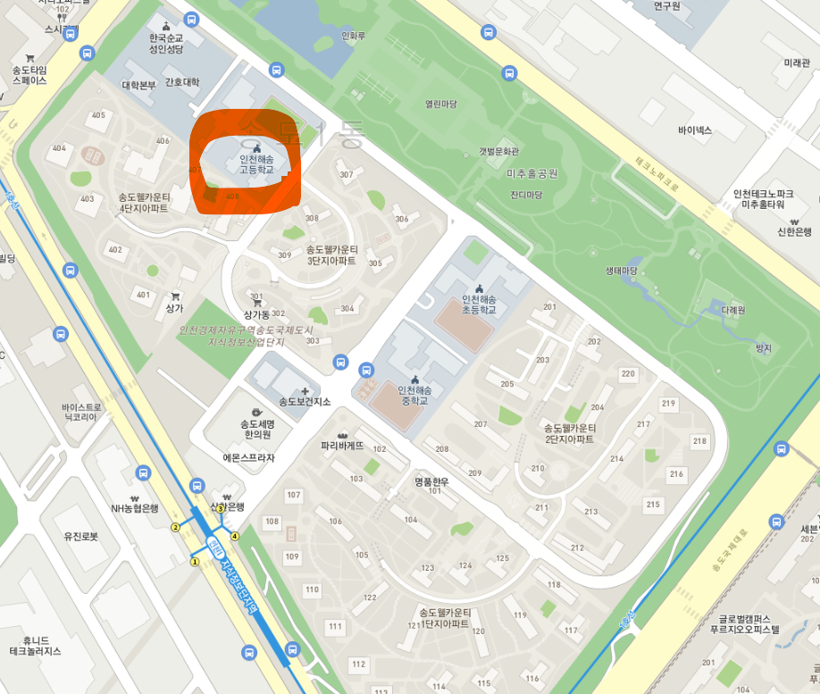 사실 이정도일줄은 몰랐다. 송도 중학교 졸업생의 60%는 송도에 있는 고등학교에 가고 싶어도 갈 수 없는 상황. 초등학교는 무조건 집가까운 곳이 좋고(초품아) 중학교도 가까울수록 좋지만 고등학교는 가까운 곳보다는 학교 분위기나 진학률을 더 선호하며 어는정도 사리분별이 되는 나이이므로 장거리 통학해도 부모의 걱정은 덜한편이지만 가고 싶은 고등학교가 대부분 송도에 있다는게 문제다. 집가깝고 비슷한 학업 분위기, 비슷한 학업성취도를 가진 곳이기 때문.