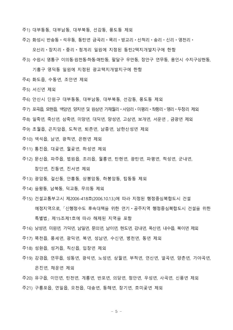 지방은 세종 외 다풀었고 수도권은 경기도 안성, 평택, 양주, 파주, 동두천시가 해제되었다.