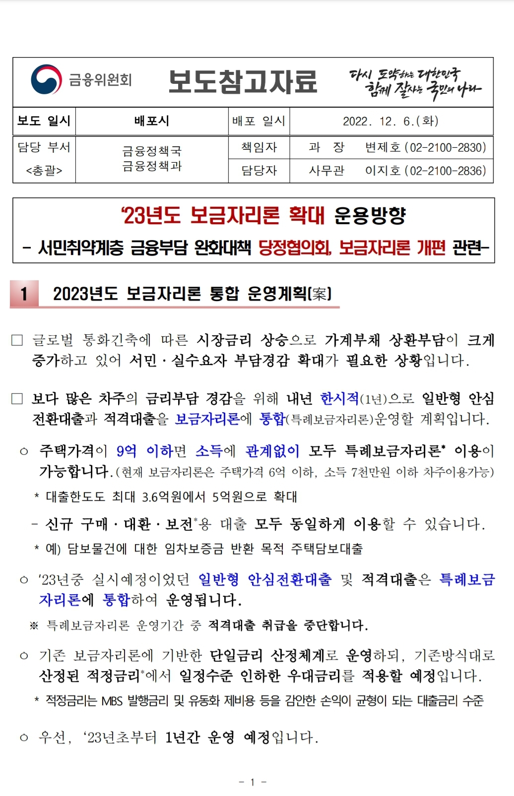 2023년도 보금자리론 통합 운영계획(案)