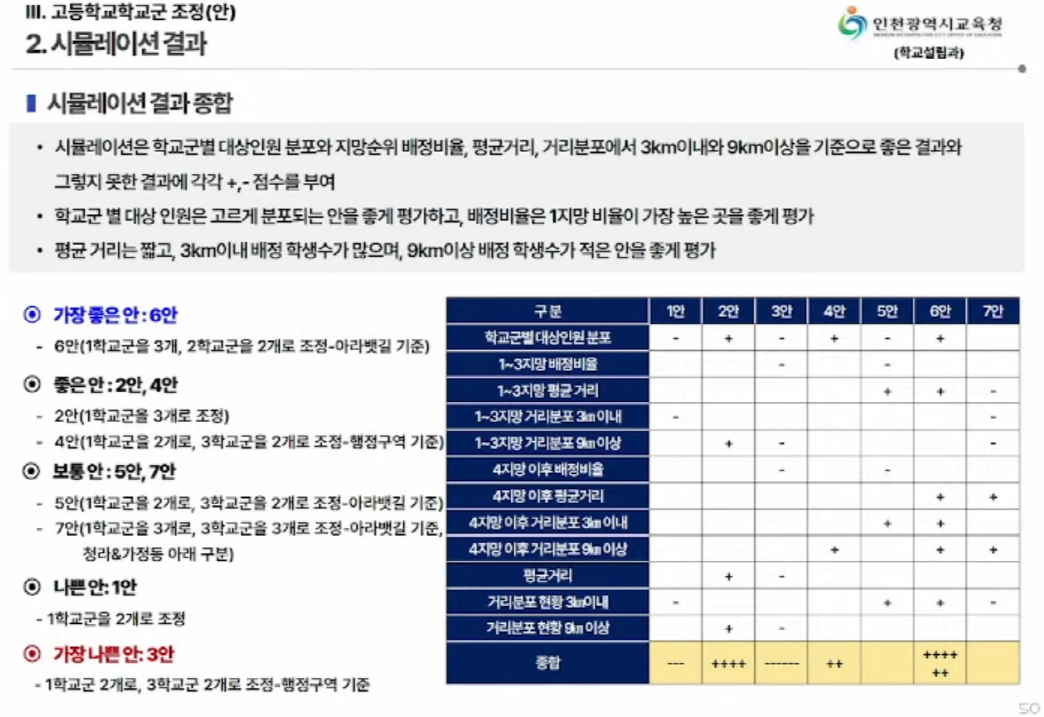 ※ 평가는 대상인원 분포와 지망순위배정비율, 평균거리, 거리분포에서 3km 이내와 9km 이상을 기준으로 점수부여.