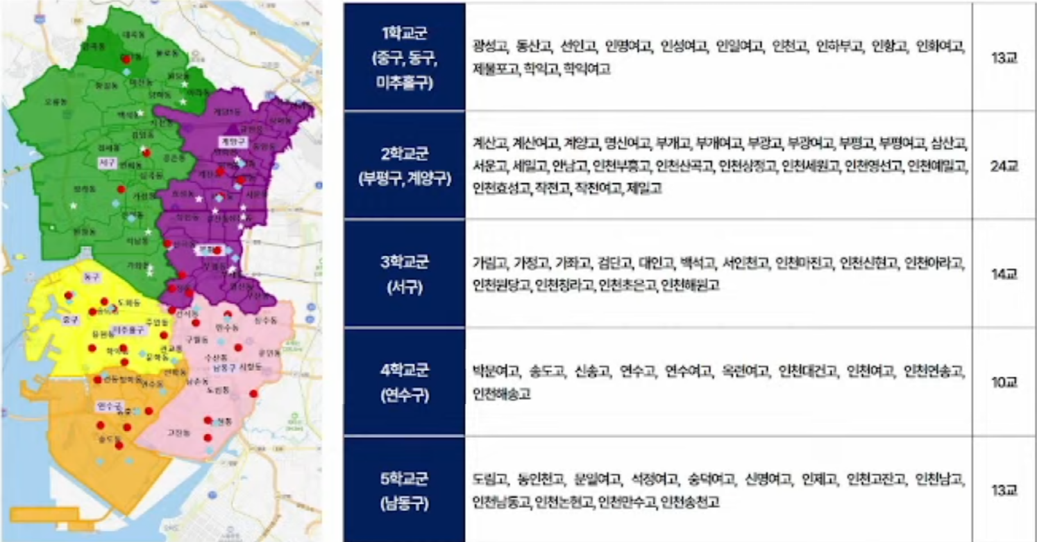 안 제시 자료에서는 각 학군에 어떤 학교들이 있는지 그런 정도만 참고하시면 될듯 합니다.