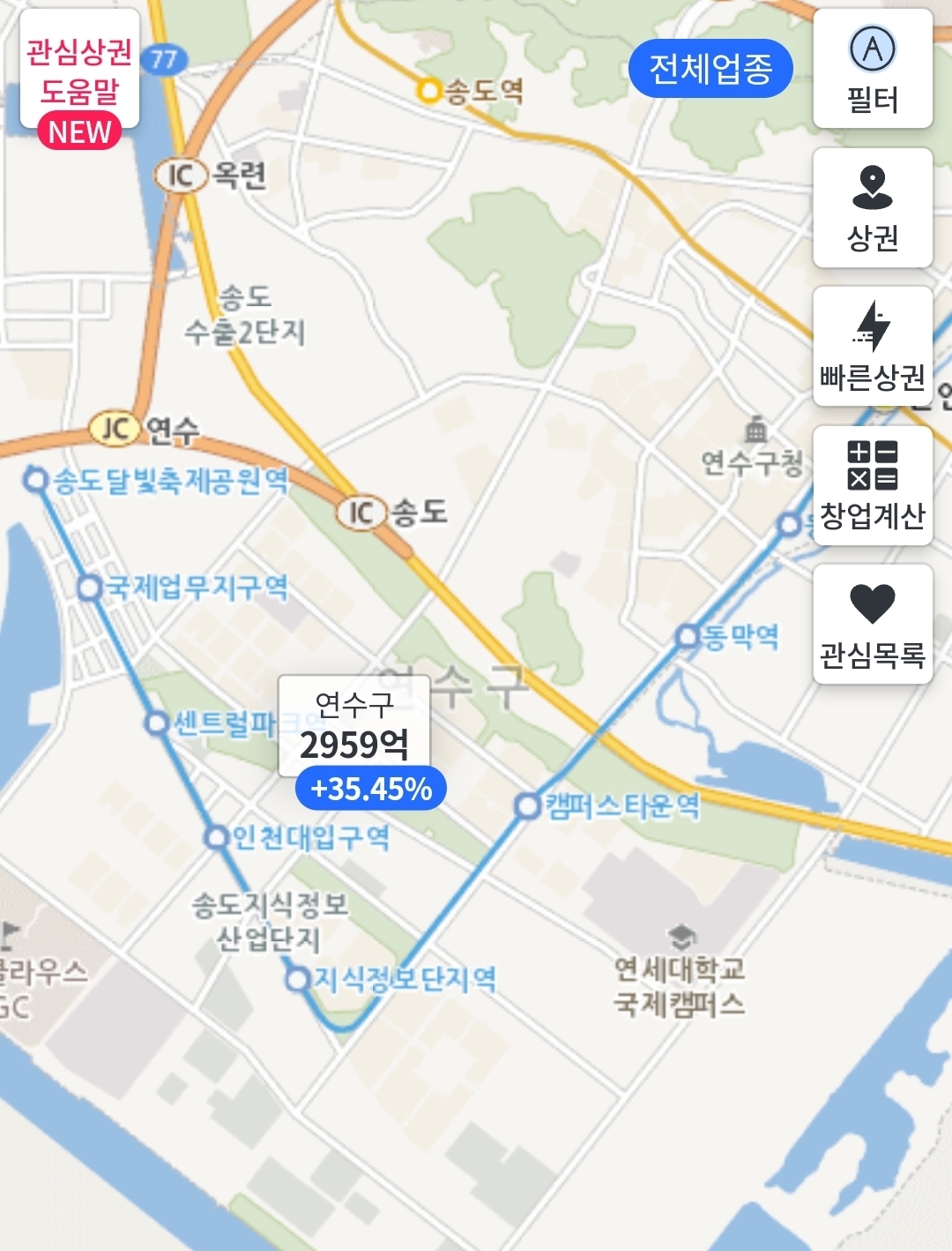 송도동으로 구분해보면