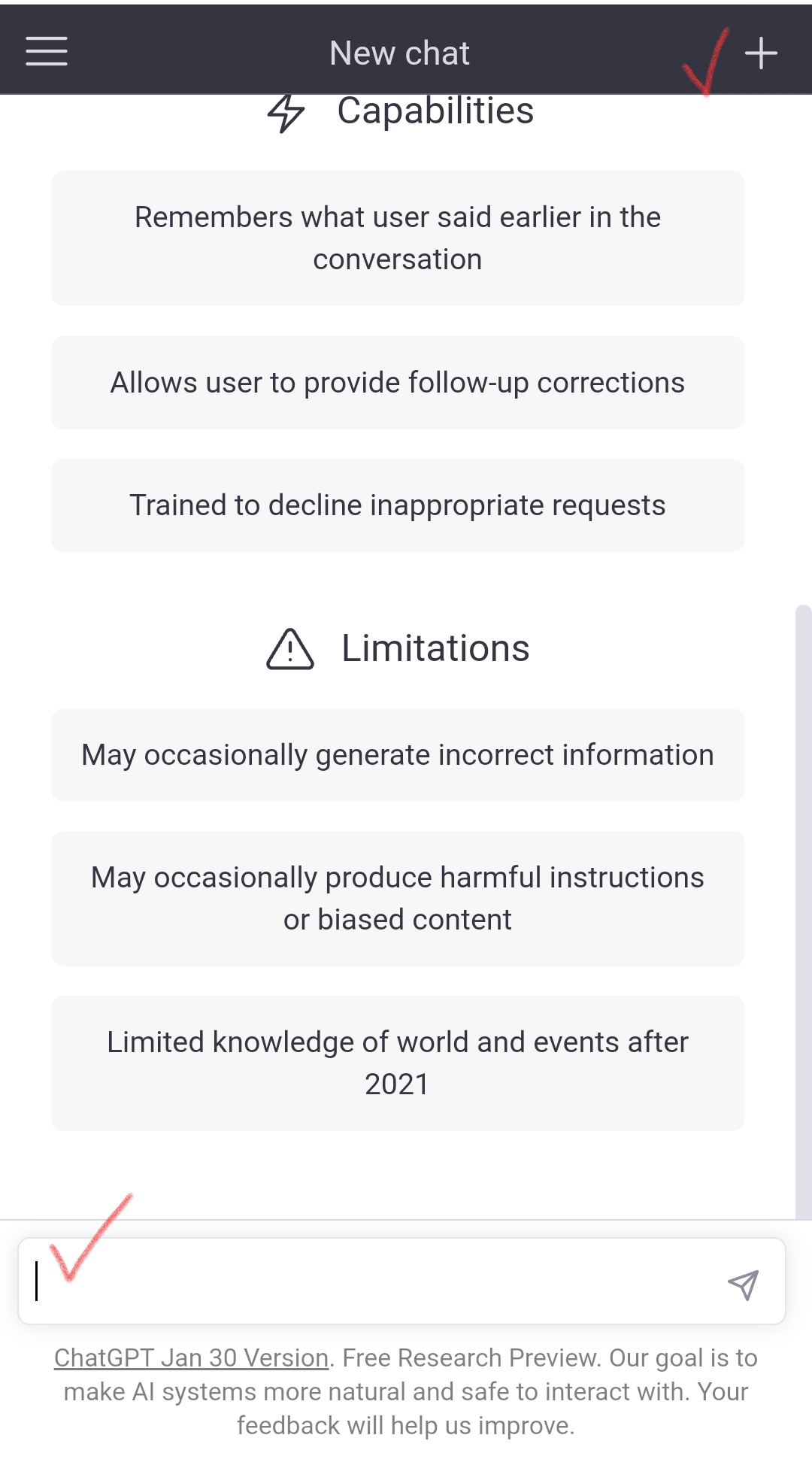 아래 공란이나 오른쪽 상단 + 눌러서 새로운 채팅 시작