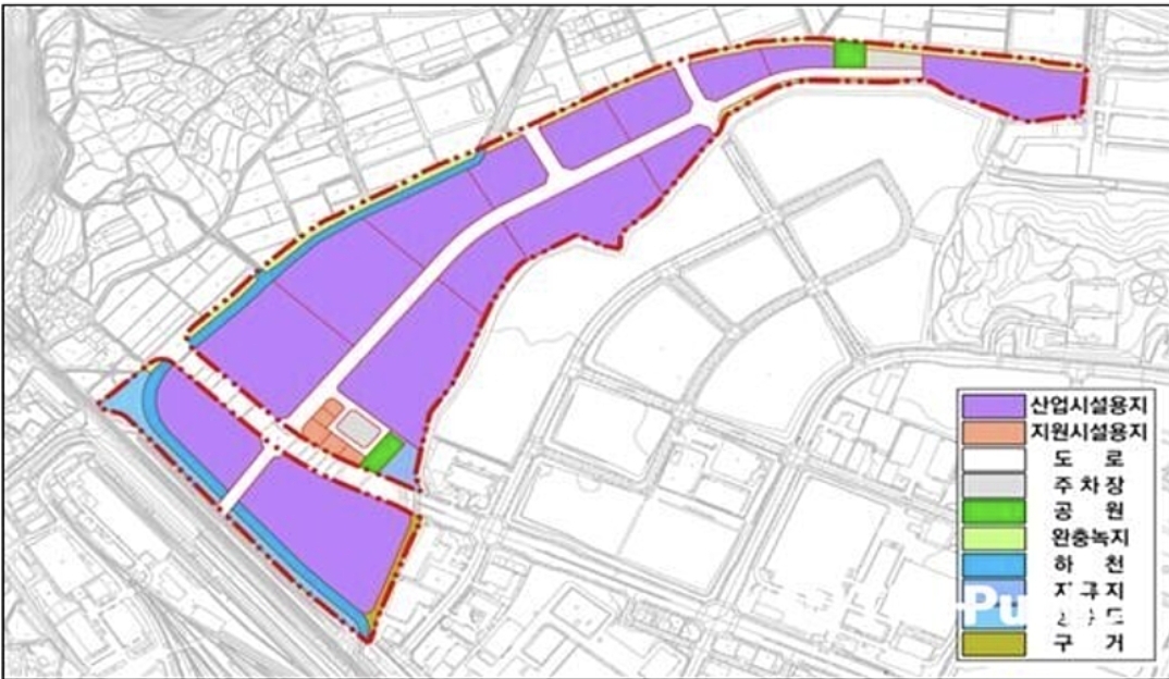 1. 최근 지정된 위 지도의 오송 바이오산단 부지는 땅 모양이 이상해서 메가플랜트 짓기에 적합하지 않고