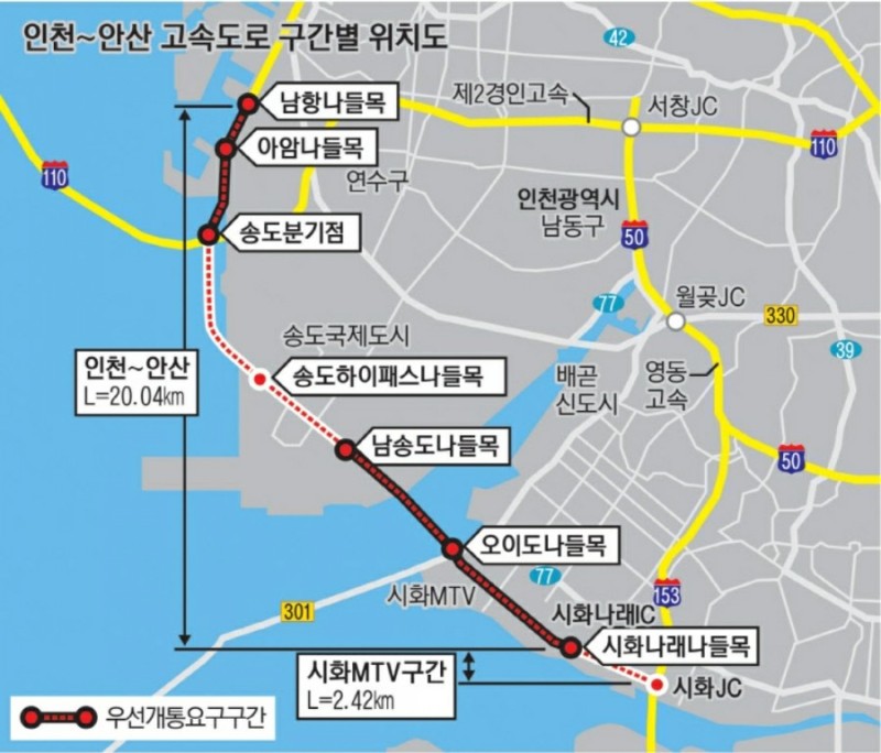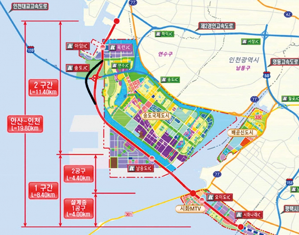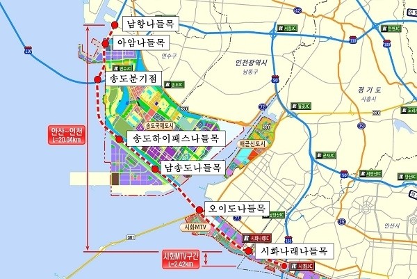 남항교차로~시화나래IC가 송도가 포함된 구간이다.