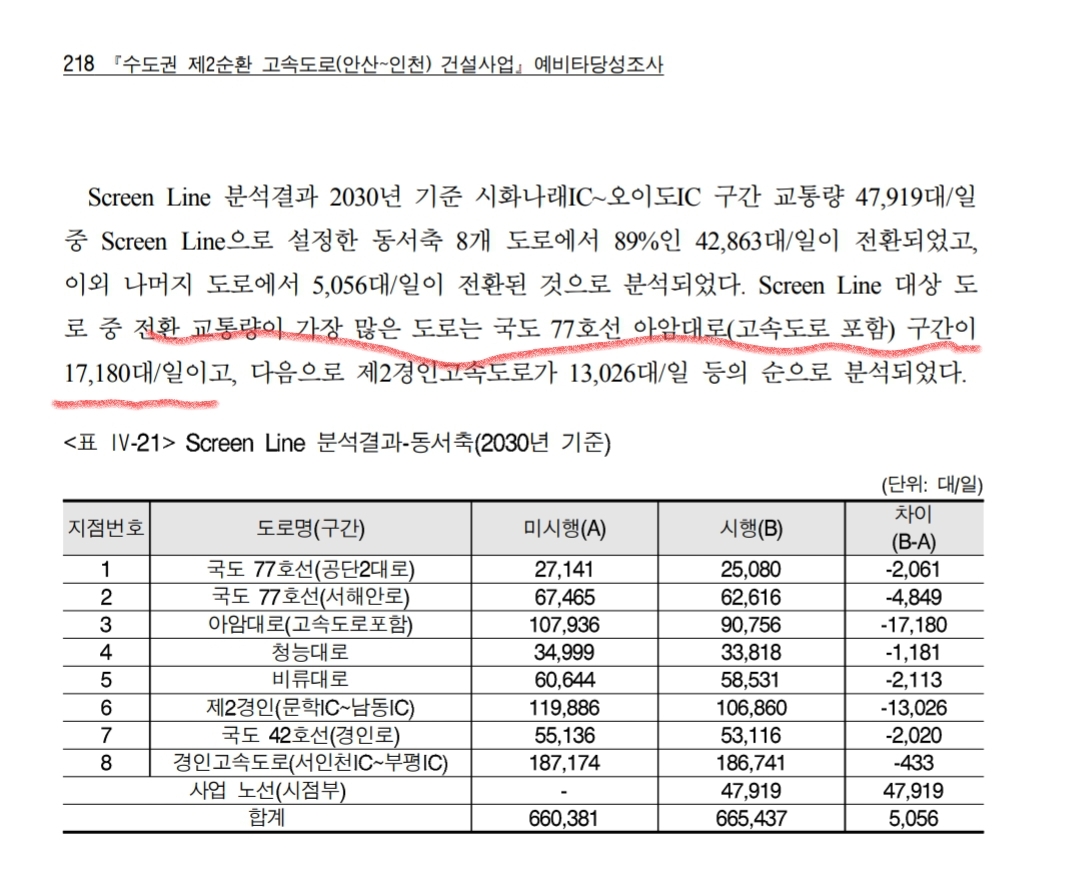 2030년 2순환 인천-안산 구간 교통량이 5만대 예상되는데 전환교통량이 가장 많은 도로는 아암대로이며 17,180대/일 감소한다.