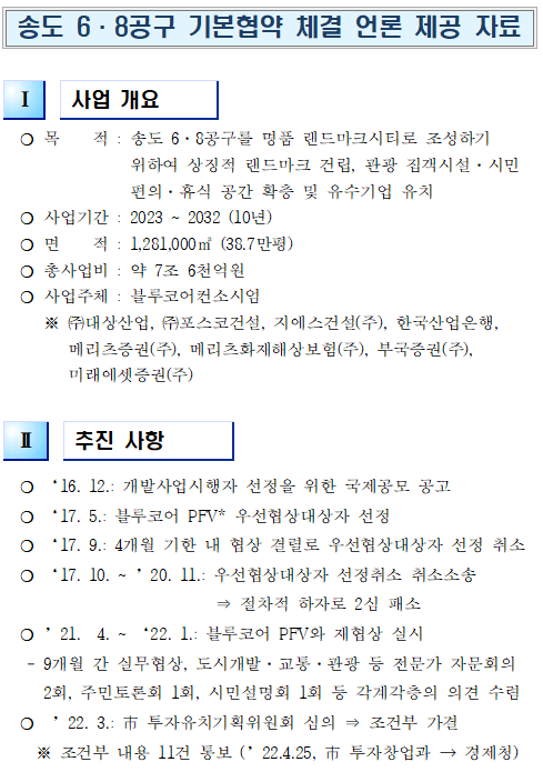 6,8공구를 아우르는 송도 최대규모 개발 프로젝트가 협약했다는 소식이다.