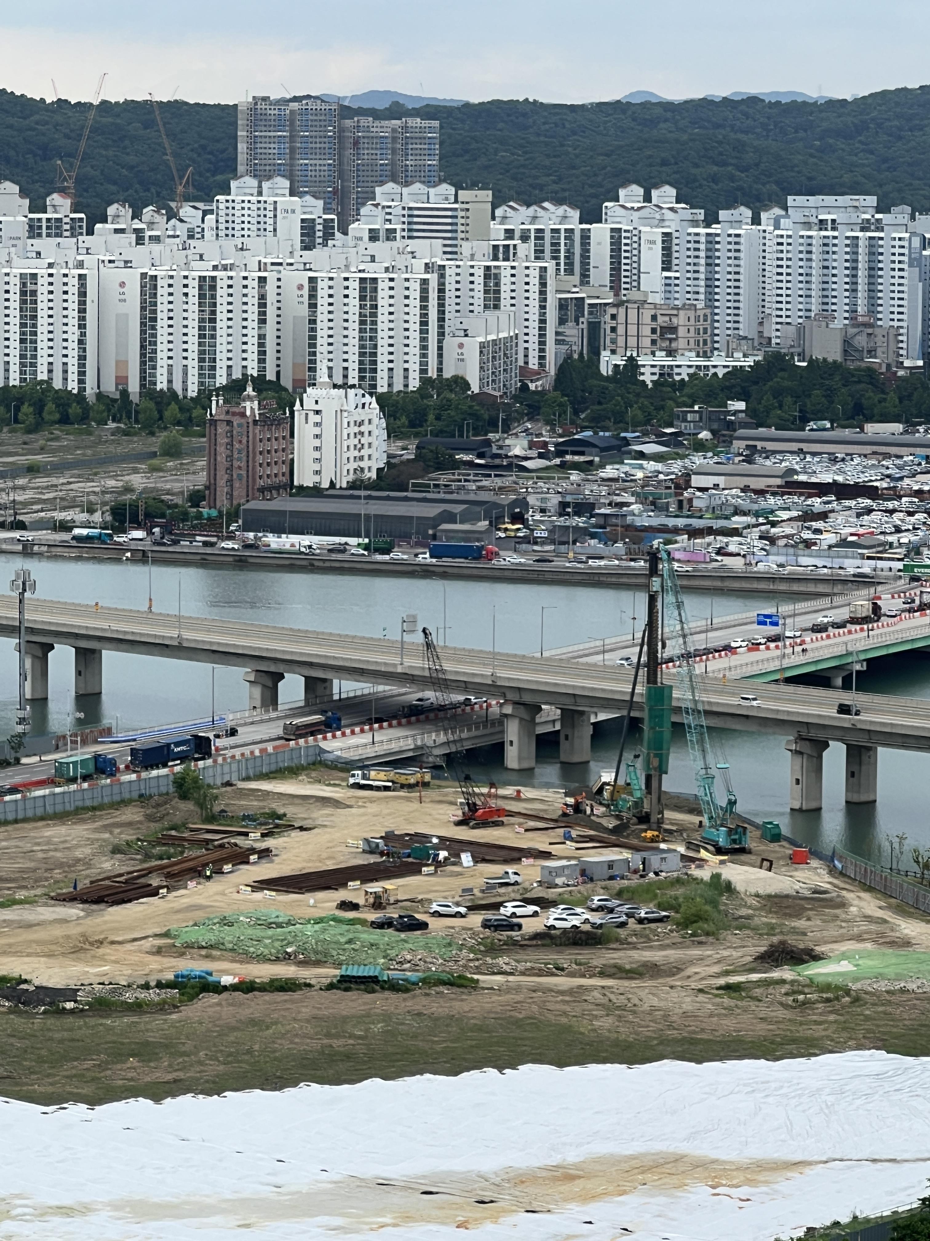 그 사이에 완충녹지가 있는데 공원으로 조성된다.
