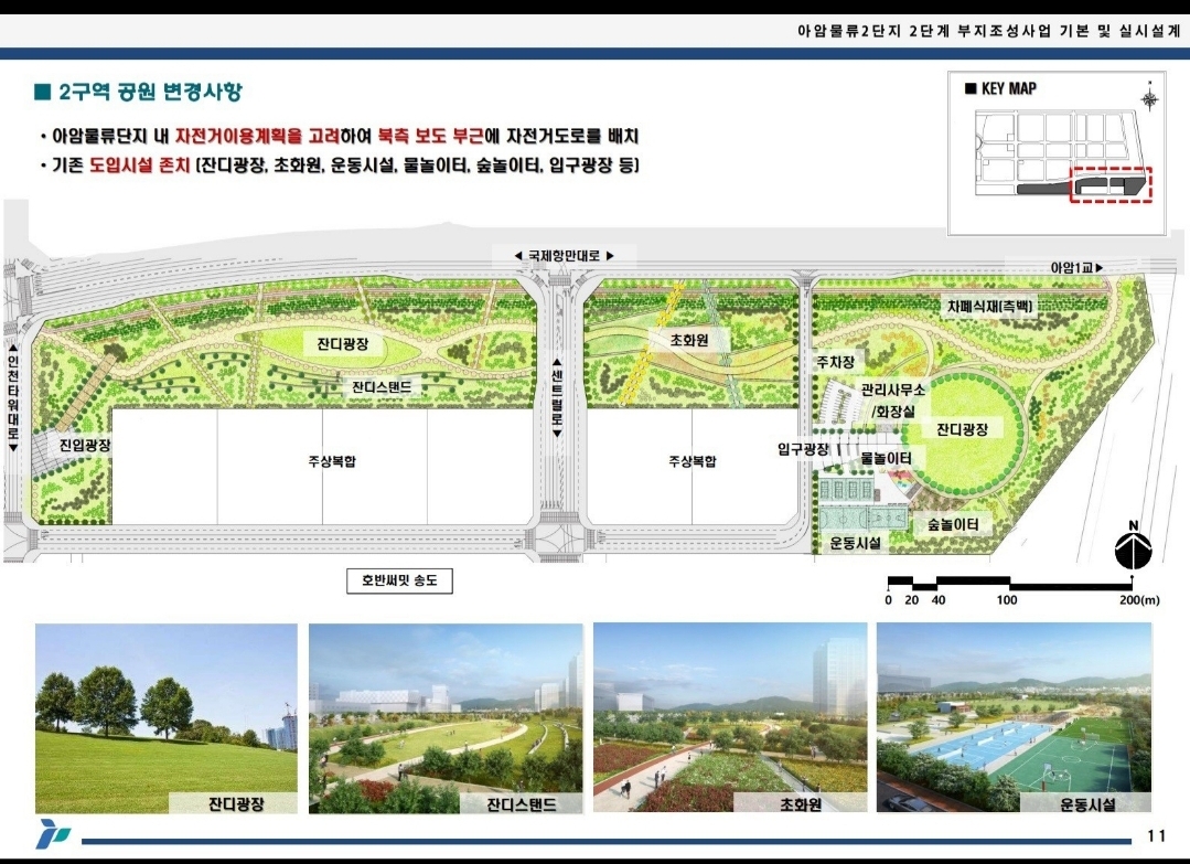 8공구에 있는 호반오션파크베르디움, 랜드마크시티센트럴더샵, 호반써밋, sk뷰, 항운연안아파트에 가까운 공원이 생기는 것.