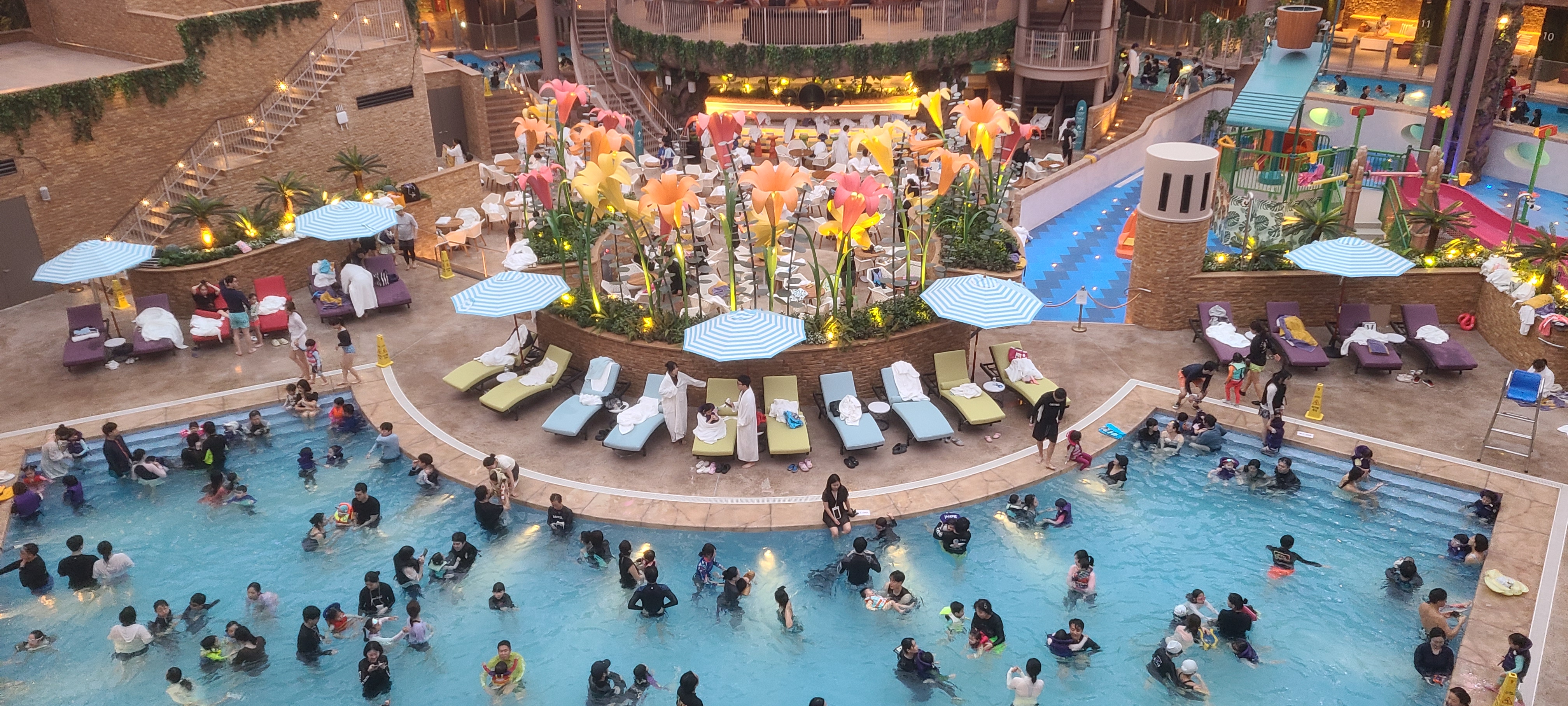 처음 오면 어디로 가야 수영장나오는지 모르고 룸체크/타월받으러 가야되는 줄에 무심코 서있다가 베드없이 물놀이 하게됨.